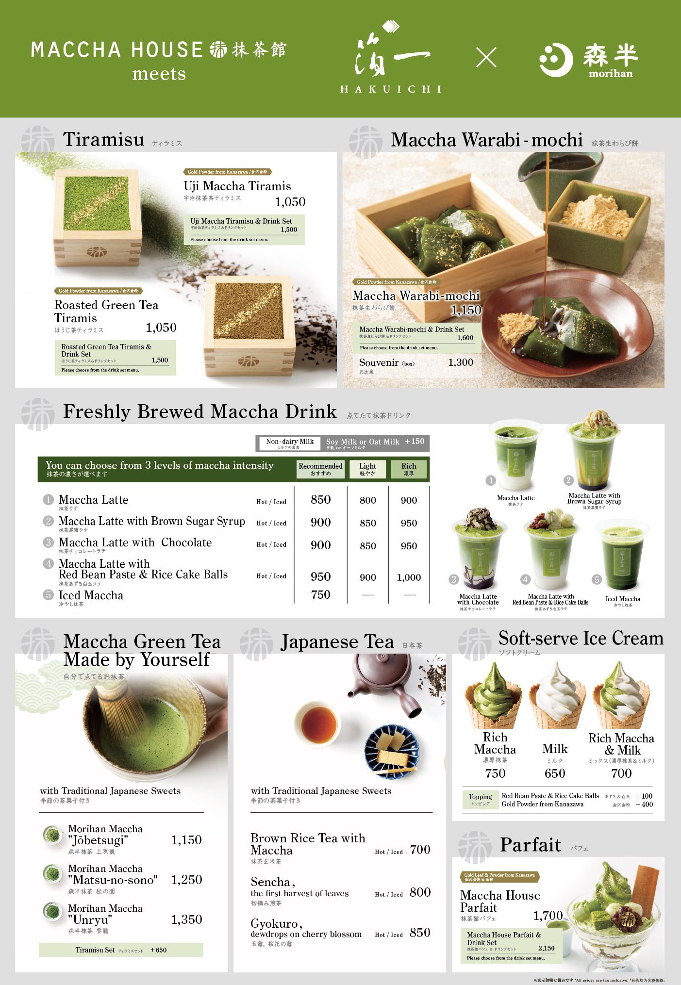 天保7年から続く、京都の老舗『森半』の厳選された香り高い抹茶をふんだんに使用。